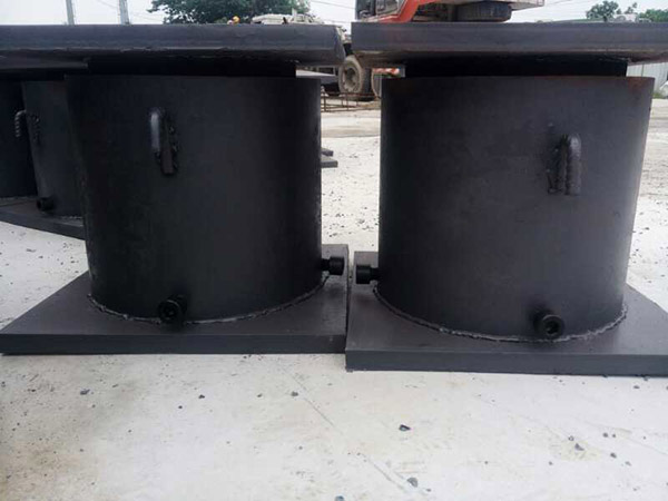 2、砂筒、砂(sha)箱(xiang)臨(lin)時(shi)支(zhi)座(zuo),通(tong)過(guo)計(ji)算(suan)選(xuan)直(zhi)徑(jing)適(shi)當(dang)的(de)鋼(gang)管(guan)製(zhi)作(zuo)砂(sha)筒(tong),砂(sha)筒(tong)底(di)部(bu)焊(han)接(jie)鋼(gang)板(ban)封(feng)堵(du),在(zai)側(ce)麵(mian)留(liu)一(yi)個(ge)螺(luo)絲(si)孔(kong)並(bing)用(yong)螺(luo)絲(si)堵(du)塞(sai),筒(tong)內(nei)裝(zhuang)入(ru)適(shi)量(liang)細(xi)砂(sha),細(xi)砂(sha)頂(ding)放(fang)置(zhi)一(yi)略(lve)小(xiao)於(yu)砂(sha)筒(tong)直(zhi)徑(jing)的(de)活(huo)塞(sai),活(huo)塞(sai)可(ke)選(xuan)擇(ze)混(hun)凝(ning)土(tu)、木頭、鋼板封口的鋼管等,使其活塞頂麵高於砂筒3-5CM。通過鬆開底部螺絲放出桶內細砂,達到拆除臨時支座的目的,完成梁板體係轉換。