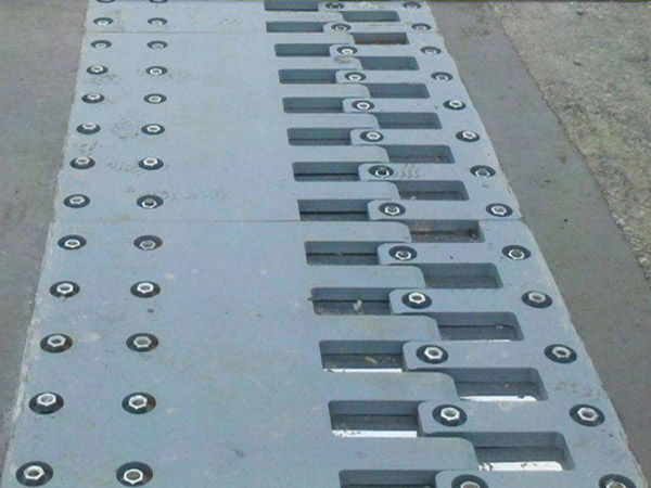 梳齒型橋梁伸縮縫裝置是由梳齒型鋼板、不鏽鋼滑板、氯丁橡膠板、錨固螺栓等組成。